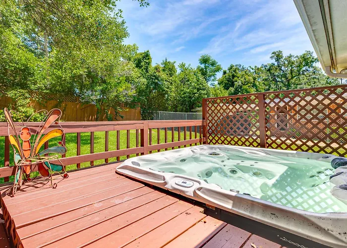 De gesitueerde in Tallahassee 2 Mi To Fsu And Famu Home With Spacious Deck! Tallahassee ligt binnen slechts 5 minuten te voet van University Baseball Dugout en nodigt gasten uit om te ontspannen in een bubbelbad.
